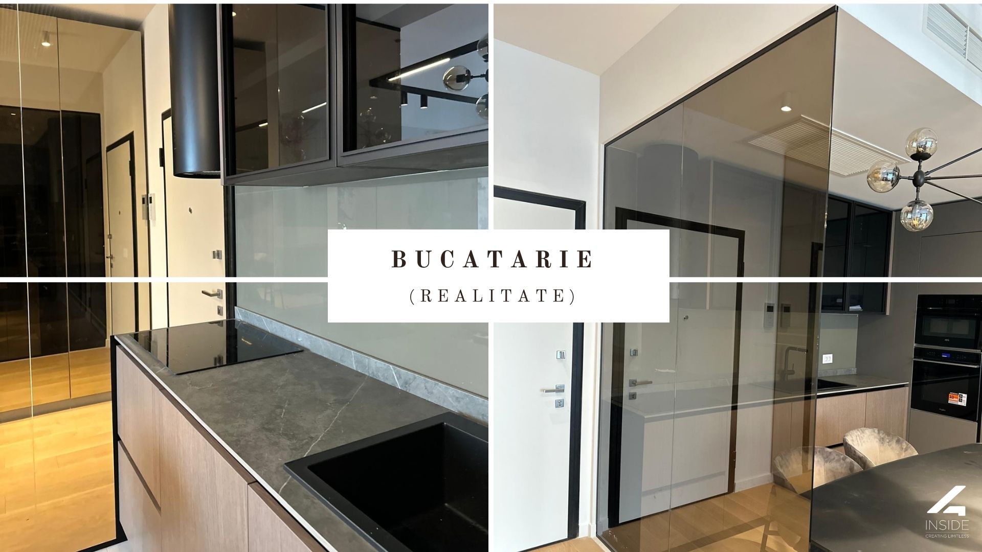 - Bucatarie open-space cu texturi naturale si detalii minimaliste