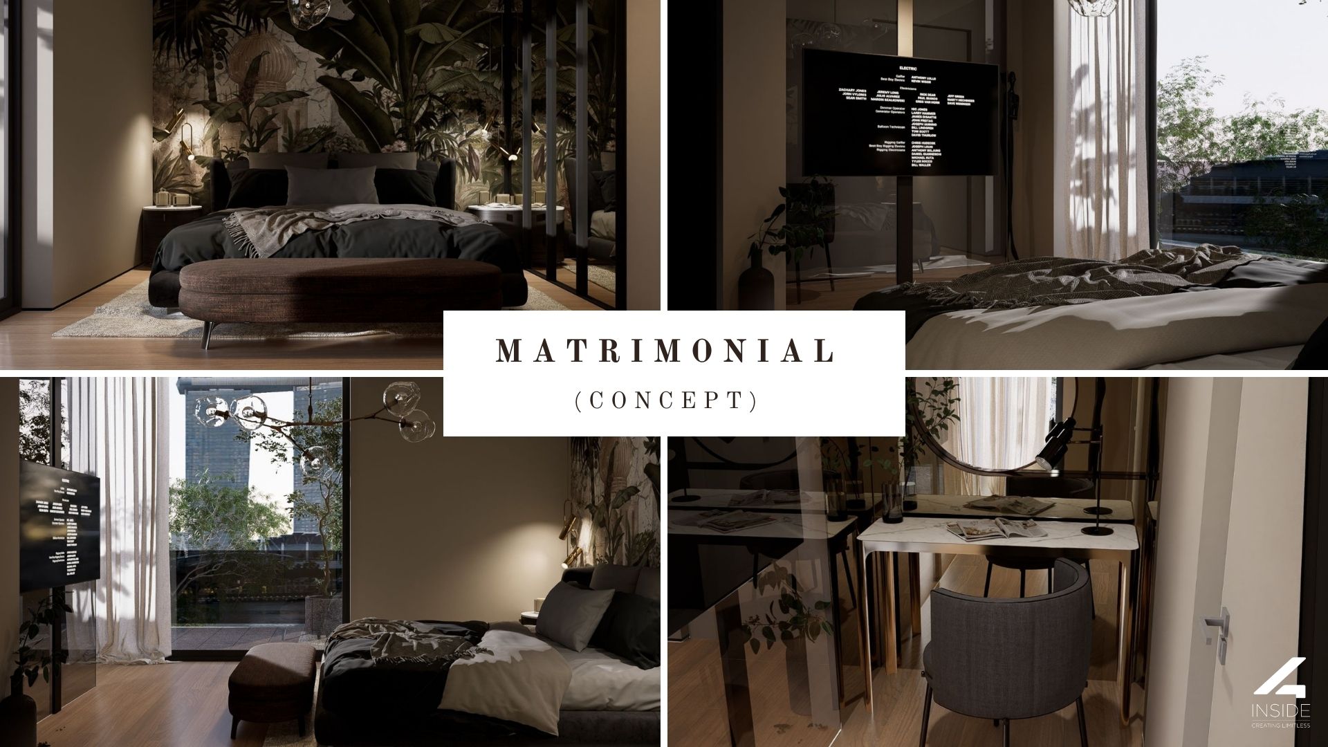 Dormitorul matrimonial este sofisticat si odihnitor, cu un pat impunator, tuse de catifea si lumini calde. Oglinzile, tapetul decorativ si noptierele compacte contureaza o atmosfera intima si moderna, perfecta pentru relaxare.