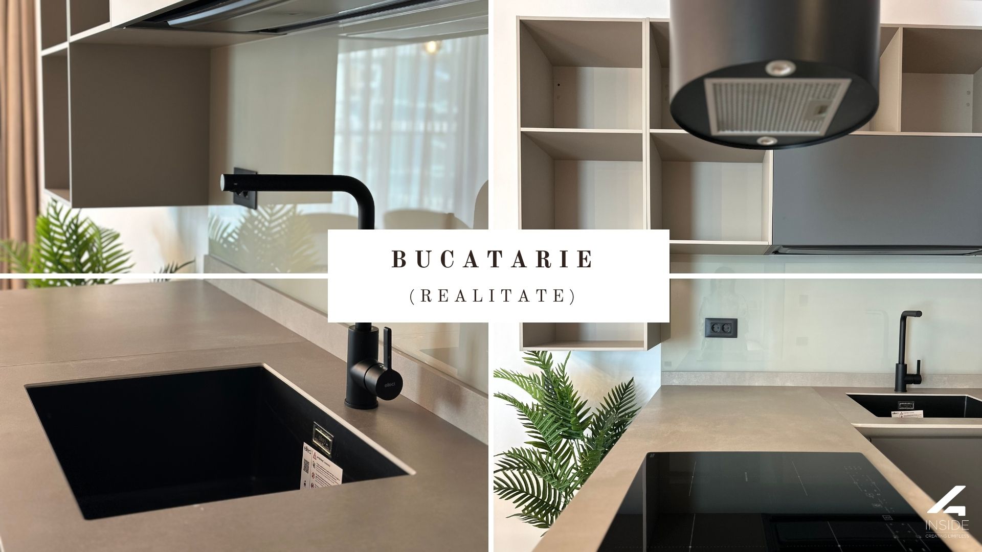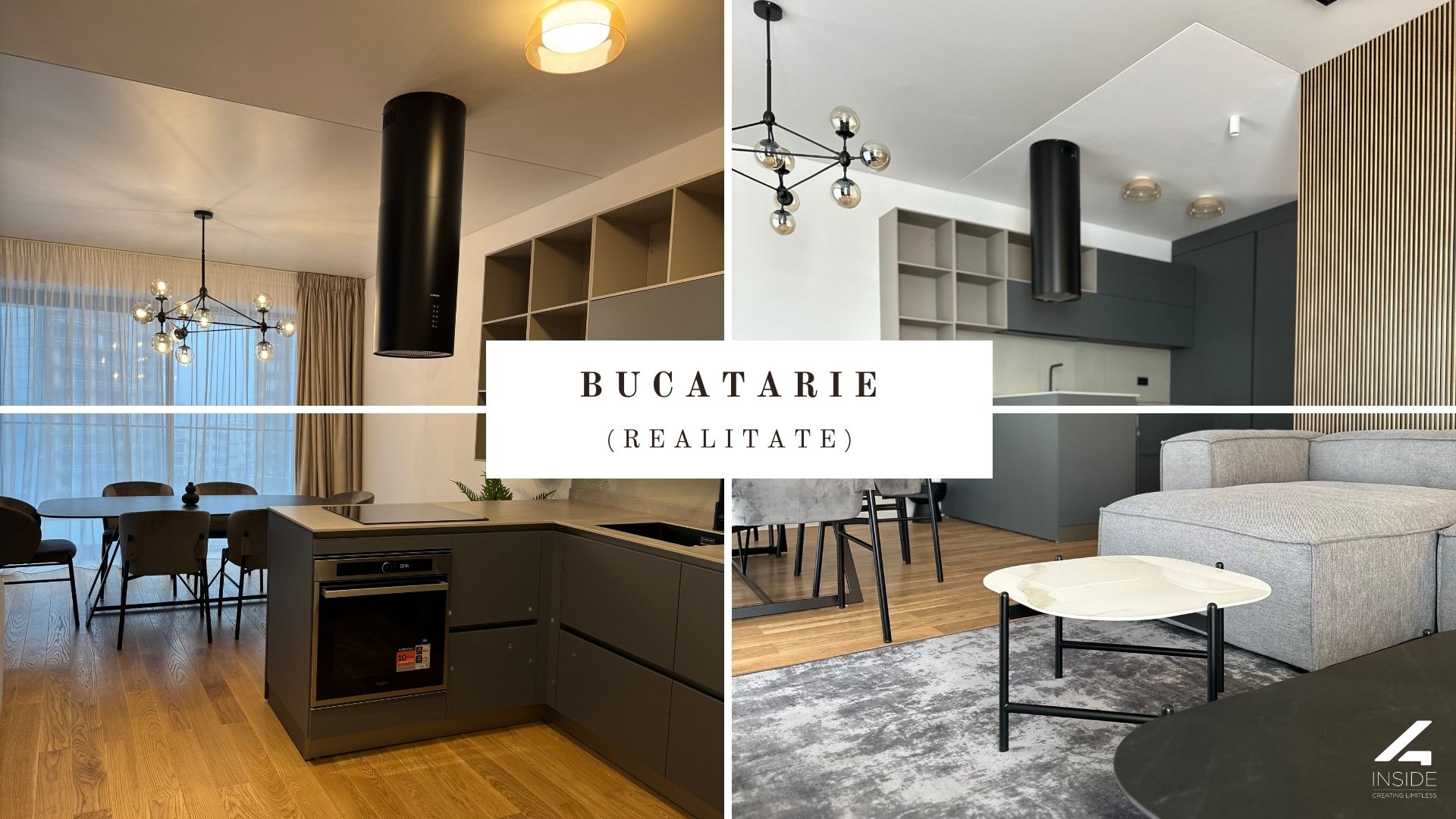 Bucataria este definita de linii drepte si fronturi mate, fara manere vizibile, intr-o compozitie deschisa si functionala. Modulul insular creeaza o separare subtila intre zona de gatit si restul livingului, adaugand si un spatiu de lucru suplimentar.