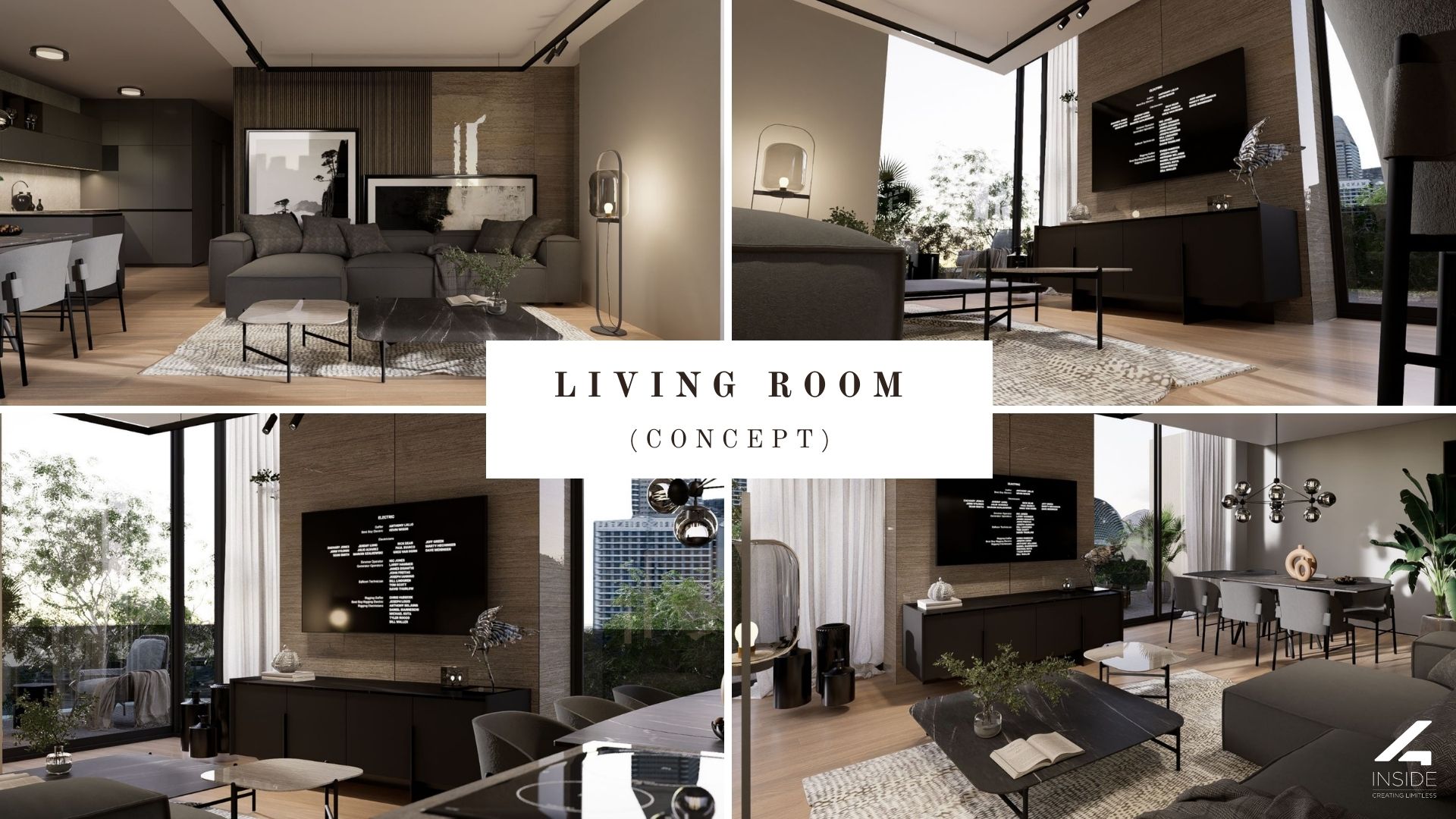 Designul apartamentului de 3 camere este coerent, rafinat si construit in jurul unui concept modern, cu accente naturale si volumetrii echilibrate. Amenajarea imbina linii clare, materiale premium si o paleta cromatica sobra, dominata de griuri calde, negru mat si insertii de lemn natural.