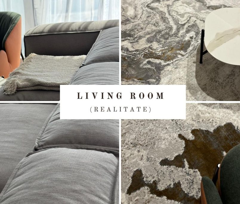 Livingul este spatios si bine compartimentat, cu o canapea modulara generoasa, completata de masute cu blaturi contrastante si structuri metalice fine. Zona TV include o comoda cu design minimalist si perete decorativ cu textura naturala, care adauga profunzime vizuala spatiului. Decorul este completat de lumina ambientala bine calculata si corpuri de iluminat statement.