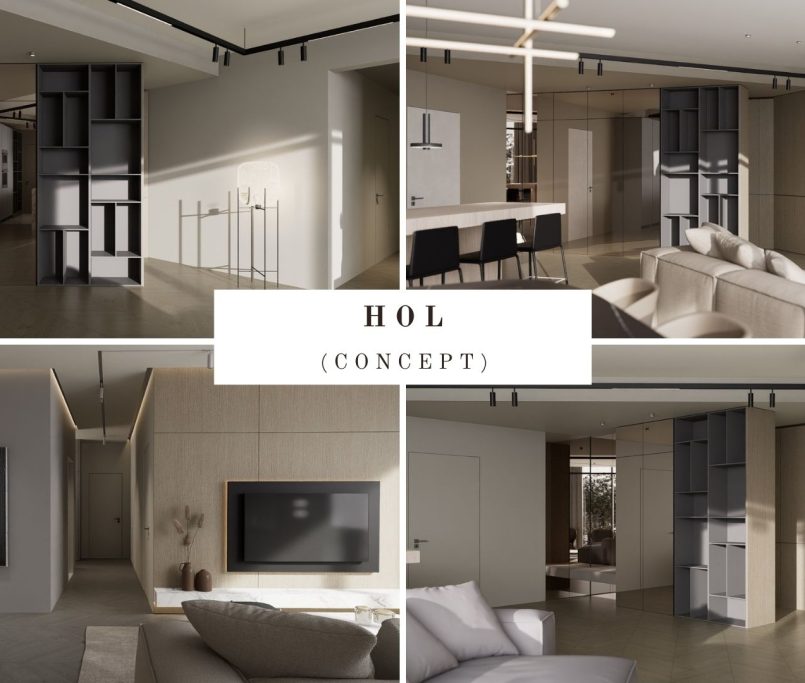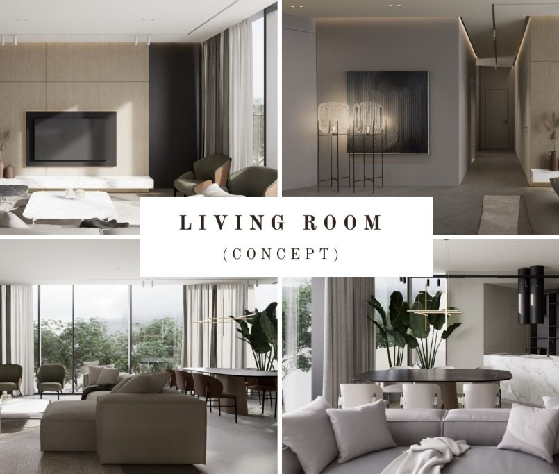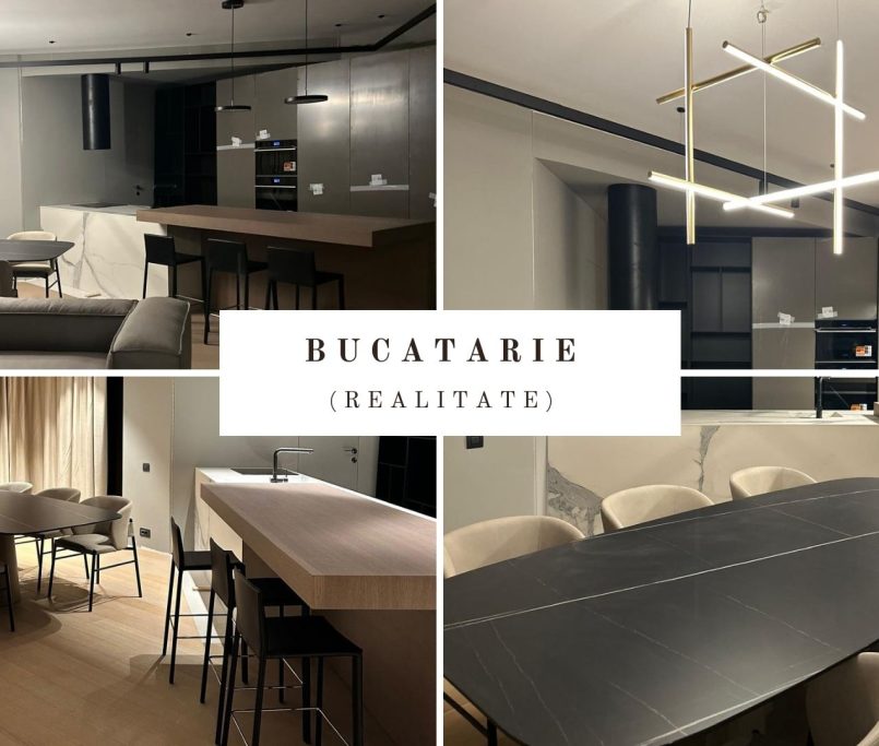 Designul apartamentului de 3 camere este coerent, rafinat si construit in jurul unui concept modern, cu accente naturale si volumetrii echilibrate. Amenajarea imbina linii clare, materiale premium si o paleta cromatica sobra, dominata de griuri calde, negru mat si insertii de lemn natural.