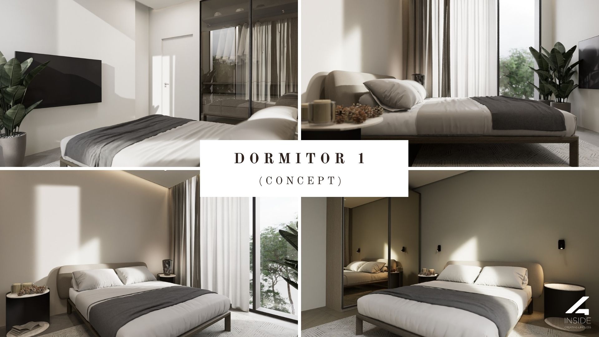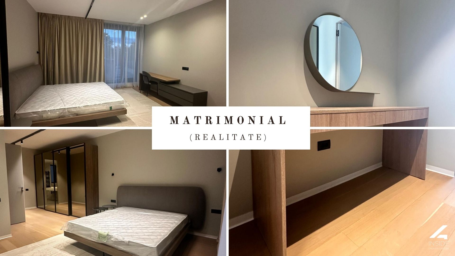 Dormitorul matrimonial este sofisticat si odihnitor, cu un pat impunator, tuse de catifea si lumini calde. Oglinzile, tapetul decorativ si noptierele compacte contureaza o atmosfera intima si moderna, perfecta pentru relaxare.