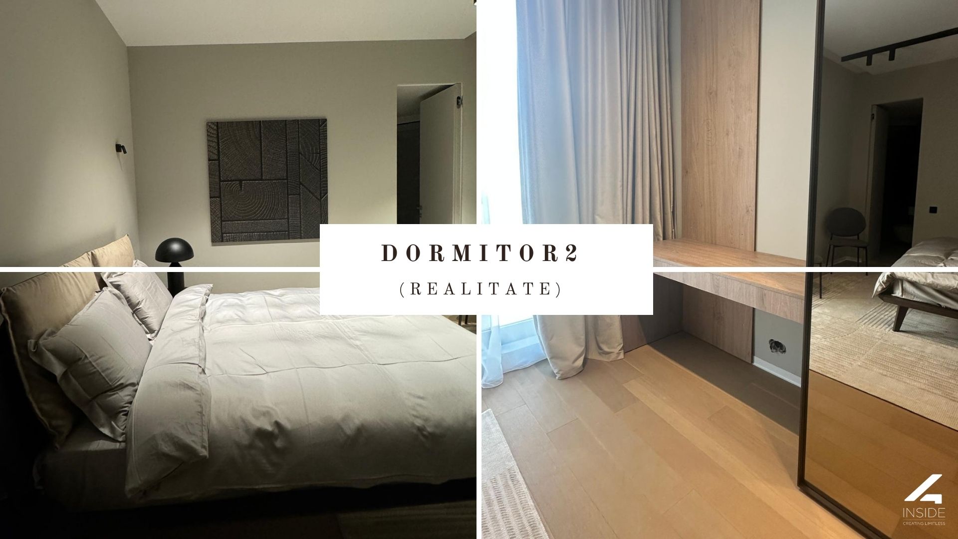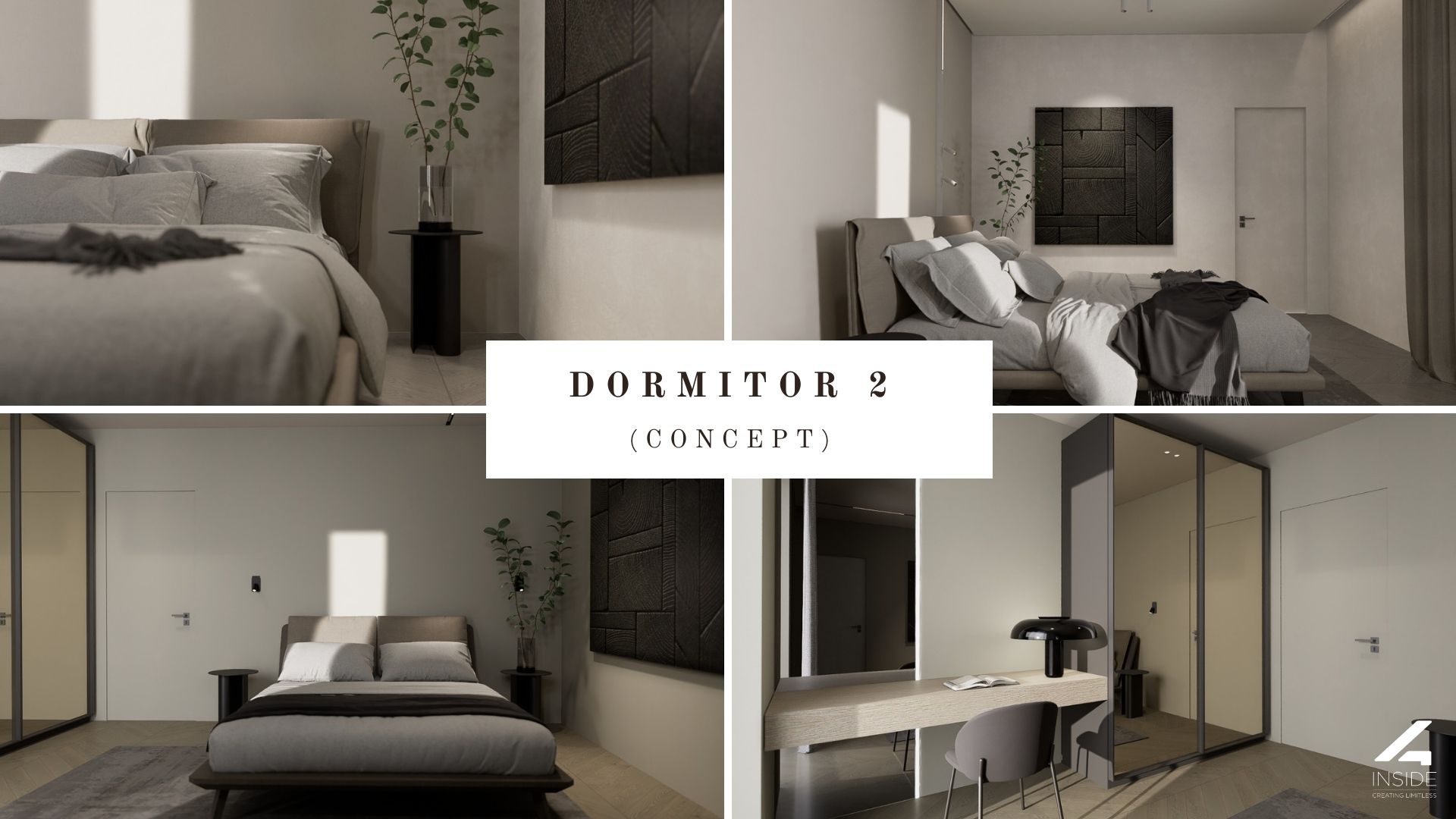 Camera de oaspeti pastreaza aceeasi coerenta stilistica, cu mobilier esential, canapea extensibila si birou integrat. Tonurile neutre si texturile mate pastreaza senzatia de continuitate si calm.